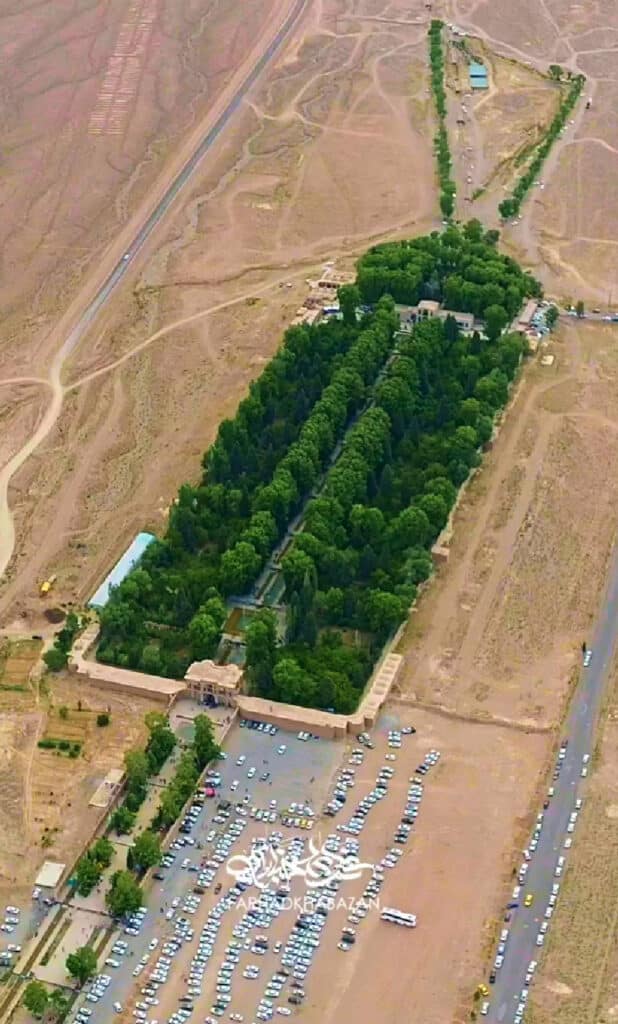 - درختان باغ که در دو طرف حوضچه ها قرار دارند