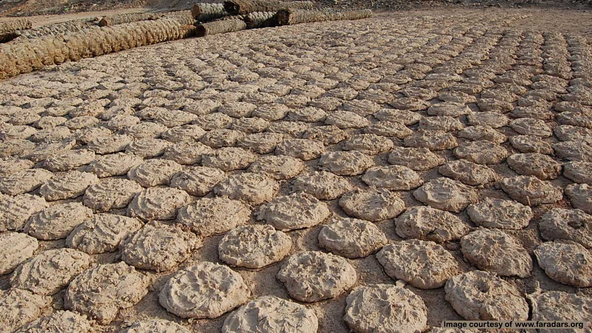 - پَهنکردن گِلِ حاصل از مخلوط با ضخامت ده سانتیمتر بر روی زمین